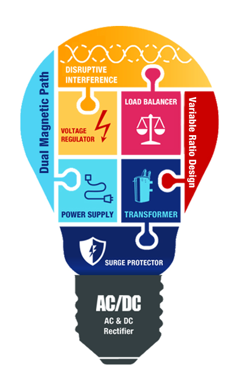 • Transformer – Steps down the power by a variable ratio versus a fixed ratio